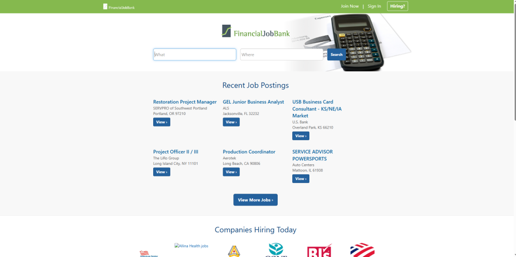The key features of FinancialJobBank include an easy-to-use interface along with specialized job sections while maintaining lower competition compared to general employment portals. The platform functions as an excellent option for companies of all sizes that have no wish to get lost on broad job sites with Fortune 500 entities.